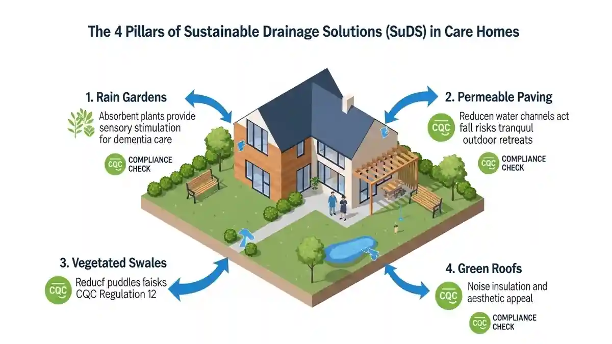 The future of sustainable drainage solutions CQC care home design is the integration of SuDS (Sustainable Drainage Systems). In Newington, Policy EN18 of the Local Plan encourages SuDS to manage surface water runoff, which often plagues the surrounding area.